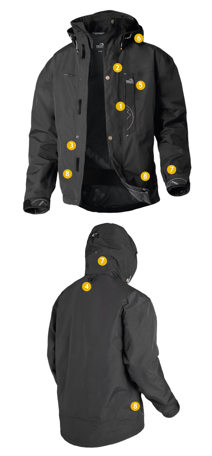 Combined with our System Fabric membrane, the jacket remains 100% waterproof (HSW <10.000 mm) and breathable.