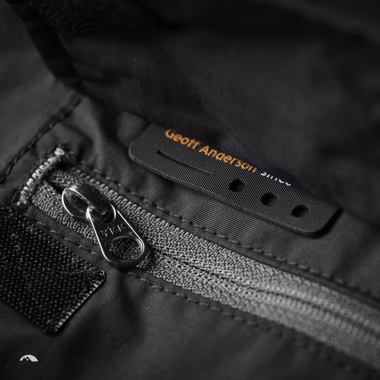 Watertight* if zipped securely and not submerged inside the pocket you’ll find a hypalon fitting for attaching tools and the like.